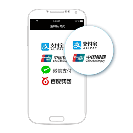 耀品捷三方支付,为iOS/Android原生/H5 App提供支付解决方案:支持微信支付、支付宝支付、银联手机支付、百度钱包等。